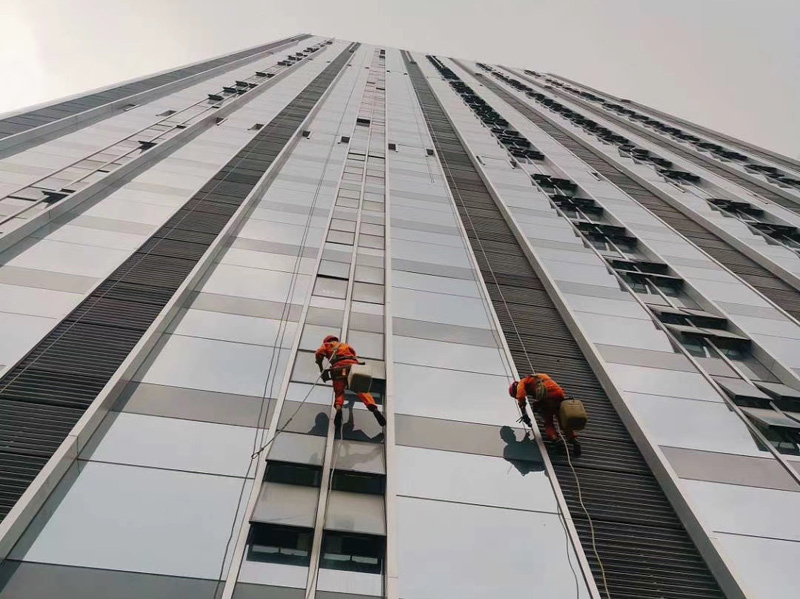 成都高空外墻防水進(jìn)行中... 看兄弟伙檢查的仔細(xì)的。